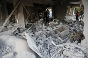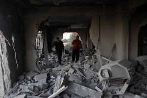(250807) -- HEBRON, 7 agosto, 2025 (Xinhua) -- Palestinos inspeccionan una casa destruida tras una incursión israelí, en la ciudad...