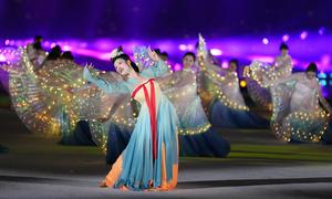 (250807) -- CHENGDU, 7 agosto, 2025 (Xinhua) -- Artistas realizan una presentación durante la ceremonia de inauguración de los Juegos...