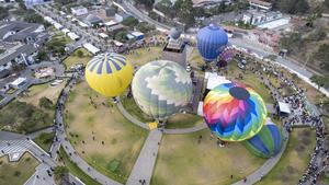 (250808) -- QUITO, 8 agosto, 2025 (Xinhua) -- Globos aerostáticos vuelan durante el cuarto Festival Internacional del Globo Mitad del...