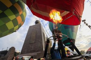 (250808) -- QUITO, 8 agosto, 2025 (Xinhua) -- Un hombre prepara un globo aerostático para elevarse durante el cuarto Festival...