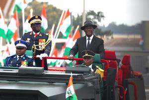 (250808) -- ABIYAN, 8 agosto, 2025 (Xinhua) -- Imagen del 7 de agosto de 2025 del presidente marfileño, Alassane Ouattara...