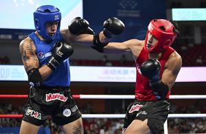 (250808) -- CHENGDU, 8 agosto, 2025 (Xinhua) -- Zhang Chengcheng (d), de China, compite ante Juan Antonio Hernández Totomol, de...