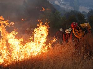 (250808) -- VENTURA, 8 agosto, 2025 (Xinhua) -- Imagen del 7 de agosto de 2025 de bomberos luchando por contener...