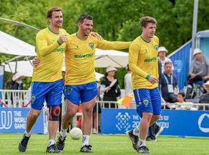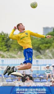 (250809) -- CHENGDU, 9 agosto, 2025 (Xinhua) -- Bruno Arnold, de Brasil, compite durante el partido del grupo A de...