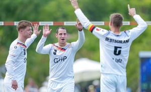 (250809) -- CHENGDU, 9 agosto, 2025 (Xinhua) -- Jugadores de Alemania festejan durante el partido del grupo A de la...