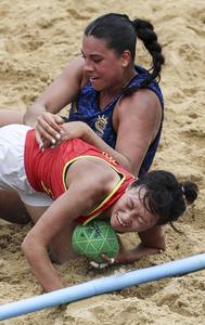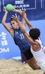 (250809) -- CHENGDU, 9 agosto, 2025 (Xinhua) -- Agostina Arcajo (i), de Argentina, compite durante el partido del grupo B...