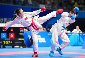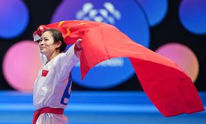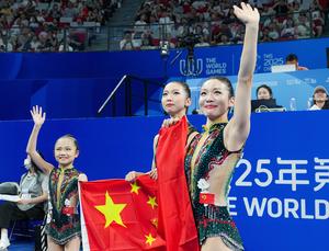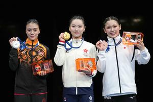(250809) -- CHENGDU, 9 agosto, 2025 (Xinhua) -- La medallista de oro Sham Hui Yu Lydia (c), de Hong Kong...
