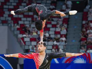 (250809) -- CHENGDU, 9 agosto, 2025 (Xinhua) -- Alexey Glukhov (i)/Anastasia Glazunova, de Moldavia, compiten durante la final estándar del...