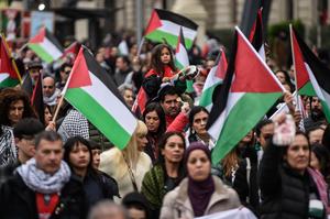 (250809) -- SANTIAGO, 9 agosto, 2025 (Xinhua) -- Personas participan en "La Marcha de Las Ollas Vacías" convocada por la...