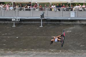 (250810) -- CHENGDU, 10 agosto, 2025 (Xinhua) -- Giulia Castelli, de Italia, compite durante la final de wakeboard estilo libre...