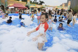 (250810) -- BEIJING, 10 agosto, 2025 (Xinhua) -- Imagen del 9 de agosto de 2025 de niños divirtiéndose en un...