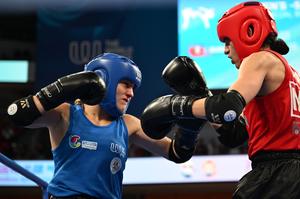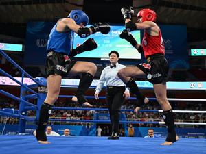 (250810) -- CHENGDU, 10 agosto, 2025 (Xinhua) -- Martyna Kierczynska (i) compite con Laura Fernanda Burgos López durante el encuentro...