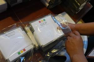 (250810) -- LA PAZ, 10 agosto, 2025 (Xinhua) -- Imagen del 9 de agosto 2025 de una persona empaquetando papeletas...