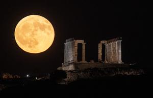 (250810) -- ATENAS, 10 agosto, 2025 (Xinhua) -- Imagen del 9 de agosto de 2025 de una luna llena elevándose...