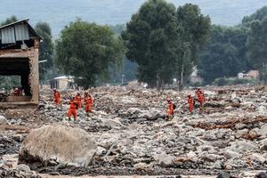 (250810) -- YUZHONG, 10 agosto, 2025 (Xinhua) -- Imagen del 9 de agosto de 2025 de rescatistas buscando sobrevivientes, en...