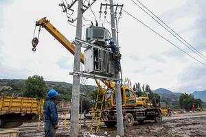 (250810) -- YUZHONG, 10 agosto, 2025 (Xinhua) -- Imagen del 9 de agosto de 2025 de trabajadores intentando reparar instalaciones...
