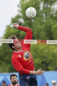 (250811) -- CHENGDU,11 agosto, 2025 (Xinhua) -- Andrés Gruss, de Chile, compite durante el partido del Grupo B de la...