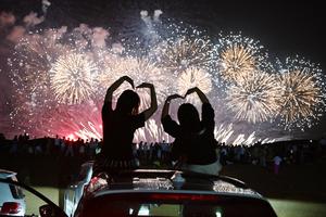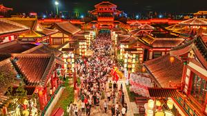 (250811) -- BEIJING, 11 agosto, 2025 (Xinhua) -- Imagen del 10 de agosto de 2025 de turistas observando un espectáculo...