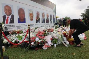(250811) -- ACCRA, 11 agosto, 2025 (Xinhua) -- Imagen del 9 de agosto de 2025 de un hombre colocando flores...