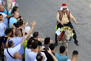 (250811) -- ROUM, 11 agosto, 2025 (Xinhua) -- Imagen del 10 de agosto de 2025 de personas montando burros durante...