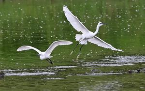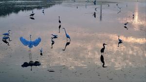 (250811) -- BEIJING, 11 agosto, 2025 (Xinhua) -- Imagen del 10 de agosto de 2025 de garzas volando sobre un...