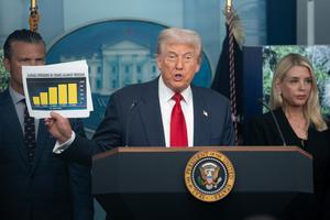 (250811) -- WASHINGTON, 11 agosto, 2025 (Xinhua) -- El presidente estadounidense, Donald Trump (c), habla durante una conferencia de prensa...