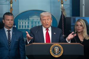 (250811) -- WASHINGTON, 11 agosto, 2025 (Xinhua) -- El presidente estadounidense, Donald Trump (c), habla durante una conferencia de prensa...