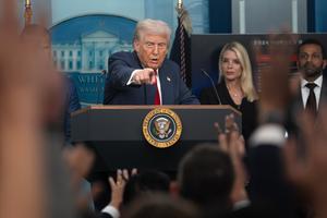 (250811) -- WASHINGTON, 11 agosto, 2025 (Xinhua) -- El presidente estadounidense, Donald Trump, responde preguntas durante una conferencia de prensa...