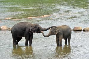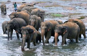 (250812) -- PINNAWALA, 12 agosto, 2025 (Xinhua) -- Imagen del 9 de agosto de 2025 de elefantes vistos en el...