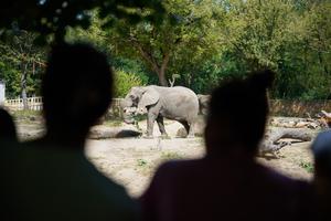 (250812) -- VARSOVIA, 12 agosto, 2025 (Xinhua) -- Visitantes observan elefantes en el Zoológico de Varsovia, en Varsovia, Polonia, el...