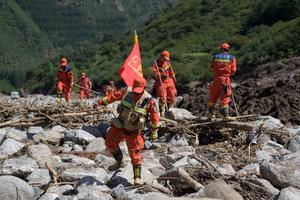 (250812) -- YUZHONG, 12 agosto, 2025 (Xinhua) -- Imagen del 11 de agosto de 2025 de rescatistas realizando operaciones de...