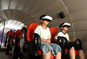 (250812) -- SHIJIAZHUANG, 12 agosto, 2025 (Xinhua) -- Niños experimentan una simulación dentro de una cápsula espacial simulada, en Shijiazhuang,...