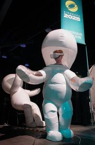 (250813) -- VANCOUVER, 13 agosto, 2025 (Xinhua) -- Imagen del 12 de agosto de 2025 de un visitante intentando experimentar...