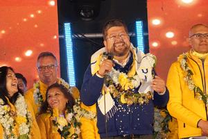 (250813) -- LA PAZ, 13 agosto, 2025 (Xinhua) -- Imagen del 12 de agosto 2025 del candidato a la Presidencia...