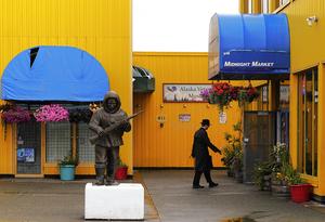 (250814) -- ANCHORAGE, 14 agosto, 2025 (Xinhua) -- Un hombre camina hacia un mercado, en Anchorage, Alaska, Estados Unidos, el...