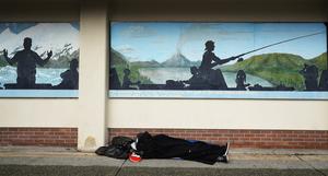 (250814) -- ANCHORAGE, 14 agosto, 2025 (Xinhua) -- Imagen del 14 de agosto de 2025 de una persona durmiendo en...