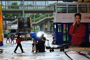 (250814) -- HONG KONG, 14 agosto, 2025 (Xinhua) -- Personas sostienen paraguas mientras caminan por una calle, en Hong Kong,...