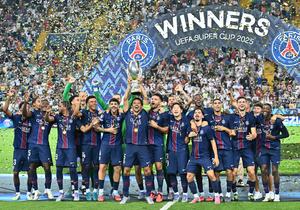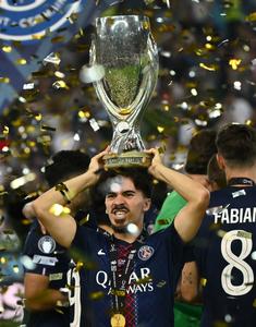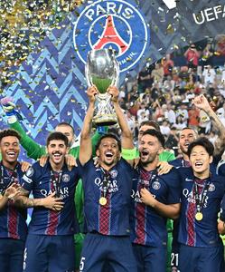 (250814) -- UDINE, 14 agosto, 2025 (Xinhua) -- Imagen del 13 de agosto de 2025 de jugadores de Paris Saint-Germain...