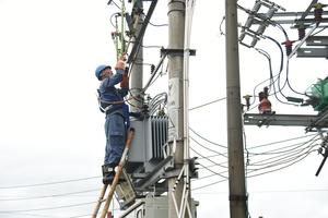 (250814) -- GUANGZHOU, 14 agosto, 2025 (Xinhua) -- Un trabajador repara instalaciones de energía en el poblado de Qiandong, en...