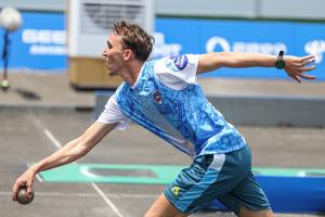 (250814) -- CHENGDU, 14 agosto, 2025 (Xinhua) -- Lucas Hecker, de Argentina, compite durante el encuentro de clasificación de dobles...