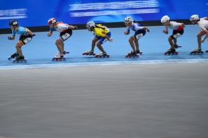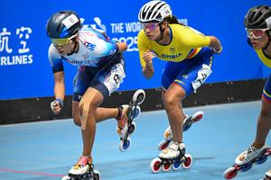 (250814) -- CHENGDU, 14 agosto, 2025 (Xinhua) -- Gabriela Rueda (3-i), de Colombia, compite durante la final de la carrera...