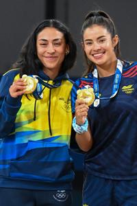 (250814) -- CHENGDU, 14 agosto, 2025 (Xinhua) -- Las medallistas de oro, Gabriela Rueda (d), de Colombia, y Gabriela Vargas...