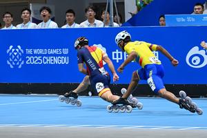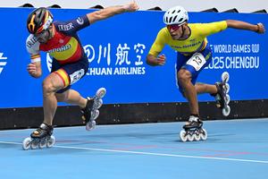 (250814) -- CHENGDU, 14 agosto, 2025 (Xinhua) -- Jhoan Sebastián Guzmán Bitar (i), de España, y Jhon Edwar Tascón Holguín,...