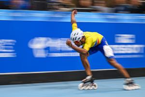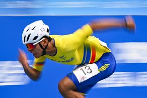 (250814) -- CHENGDU, 14 agosto, 2025 (Xinhua) -- Jhon Edwar Tascón Holguín, de Colombia, compite durante la final de 200...