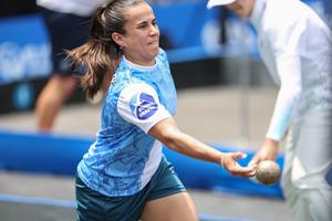 (250814) -- CHENGDU, 14 agosto, 2025 (Xinhua) -- Milagros Pereyra, de Argentina, compite durante el encuentro de clasificación de dobles...