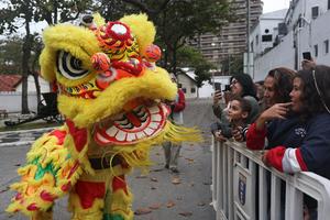 (250818) -- RIO DE JANEIRO, 18 agosto, 2025 (Xinhua) -- Imagen del 16 de agosto de 2025 de la danza del león presentada durante una celebración por el 51° aniversario de las relaciones diplomáticas entre China y Brasil, y el 80° aniversario de la victoria en la Segunda Guerra Mundial, en el Fuerte de Copacabana, en Río de Janeiro, Brasil. (Xinhua/Claudia Martini) (rtg) (ah) (ce)