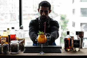 (250816) -- SANTIAGO, 16 agosto, 2025 (Xinhua) -- Imagen del 15 de agosto de 2025 de un expositor preparando un coctel a base de pisco durante el evento "Puro Pisco" llevado a cabo en el Mercado Urbano Tobalaba, en Santiago, capital de Chile. Más de 30 expositores de la industria del pisco chileno se reunieron en el evento "Puro Pisco", realizado del 14 al 16 de agosto en la capital Santiago, con la idea de incentivar el consumo de este destilado de uva producido en el norte de este país austral, cuya denominación de origen es una de las más antiguas del mundo. (Xinhua/Jorge Villegas) (jv) (jg) (rtg) (ra) (ce)