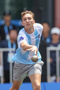 (250815) -- CHENGDU, 15 agosto, 2025 (Xinhua) -- Lucas Hecker, de Argentina, compite durante el encuentro por la medalla de bronce de las finales de tiro progresivo de lionesa masculino del evento de deportes de bolas entre Lucas Hecker, de Argentina, e Ivan Soligon, de Italia, en los Juegos Mundiales 2025, en Chengdu, en la provincia de Sichuan, en el suroeste de China, el 15 de agosto de 2025. (Xinhua/Zhang Liyun) (jg) (rtg) (ce)