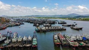 (250816) — MAOMING, 16 de agosto de 2025 (Xinhua) — Imagen tomada con un dron el 16 de agosto de 2025 de botes pesqueros esperando para salir a pescar en el puerto pesquero de Bohe, en la ciudad de Maoming, en la provincia de Guangdong, en el sur de China. Los botes pesqueros zarparon el sábado tras el levantamiento de la prohibición de pesca de verano en el Mar Meridional de China. (Xinhua/Xiao Ennan) (oa) (ra) (ce)
