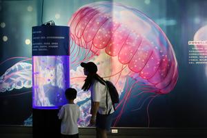 (250816) -- BEIJING, 16 agosto, 2025 (Xinhua) -- Un niño visita una exposición temática sobre las medusas en un museo, en la ciudad de Jiaxing, en la provincia de Zhejiang, en el este de China, el 16 de agosto de 2025. (Xinhua/Jin Peng) (jg) (rtg) (ce)